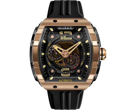 automatic movement that, as is usual for Nubeo watches, guarantees precise timekeeping and provides the following functions: Hour, Minute, Second, 24-hours.