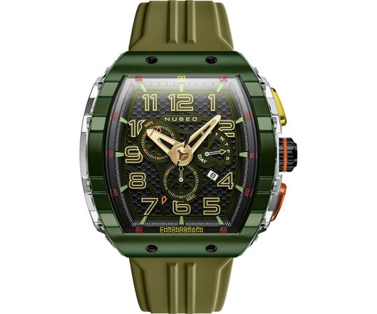 quartz movement (with battery) that, as is usual for Nubeo watches, guarantees precise timekeeping and provides the following functions: Hour, Minute, Second, Date, Day, Chronograph.