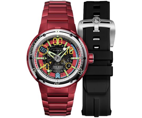 automatic movement that, as is usual for Nubeo watches, guarantees precise timekeeping and provides the following functions: Hour, Minute, Second, Date.