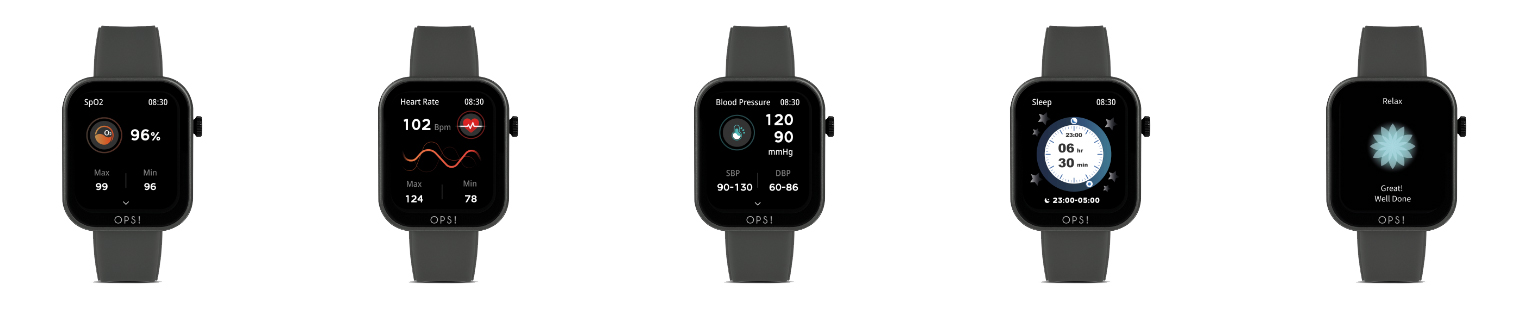 Health monitoring: saturation, heart rate, blood pressure, sleep and relax