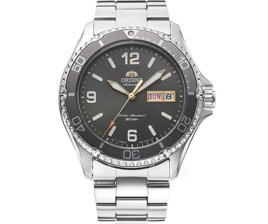 automatic movement that, as is usual for Orient watches, guarantees precise timekeeping and provides the following functions: Hour, Minute, Second, Date, Day.