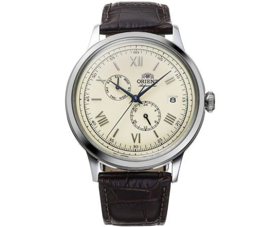 automatic movement that, as is usual for Orient watches, guarantees precise timekeeping and provides the following functions: Hour, Minute, Second, Date, Day, 24-hours.