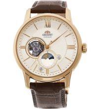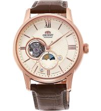 automatic movement that, as is usual for Orient watches, guarantees precise timekeeping and provides the following functions: Minute, Moon phase, Second, Hour.