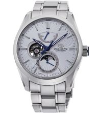automatic movement that, as is usual for Orient Star watches, guarantees precise timekeeping and provides the following functions: Date, Power Reserve, Minute, Moon phase, Second, Hour.