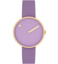 | Picto® challenges the idea of a classic watch with two hands and a dial with numbers. Here, the hour is indicated by a dot on the rotating dial, while the minutes are indicated by a conventional hand. |  |