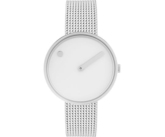 | Picto® challenges the idea of a classic watch with two hands and a dial with numbers. Here, the hour is indicated by a dot on the rotating dial, while the minutes are indicated by a conventional hand. |  |