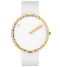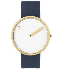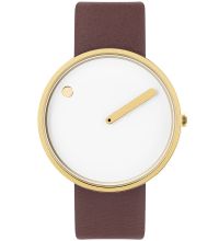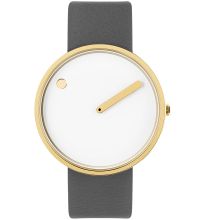 | Picto® challenges the idea of a classic watch with two hands and a dial with numbers. Here, the hour is indicated by a dot on the rotating dial, while the minutes are indicated by a conventional hand. |  |