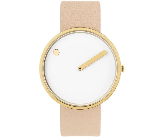 | Picto® challenges the idea of a classic watch with two hands and a dial with numbers. Here, the hour is indicated by a dot on the rotating dial, while the minutes are indicated by a conventional hand. |  |