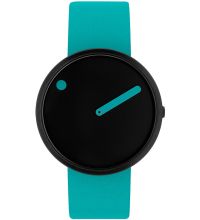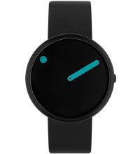 | Picto® challenges the idea of a classic watch with two hands and a dial with numbers. Here, the hour is indicated by a dot on the rotating dial, while the minutes are indicated by a conventional hand. |  |