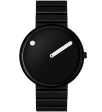 | Picto® challenges the idea of a classic watch with two hands and a dial with numbers. Here, the hour is indicated by a dot on the rotating dial, while the minutes are indicated by a conventional hand. |  |