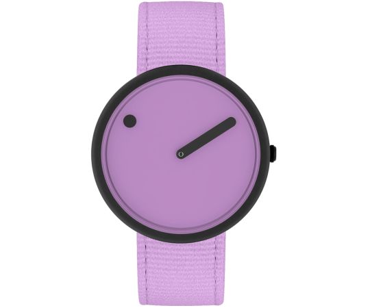 | Picto® challenges the idea of a classic watch with two hands and a dial with numbers. Here, the hour is indicated by a dot on the rotating dial, while the minutes are indicated by a conventional hand. |  |