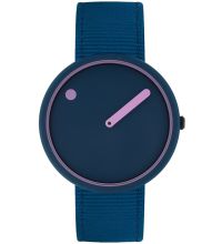 | Picto® challenges the idea of a classic watch with two hands and a dial with numbers. Here, the hour is indicated by a dot on the rotating dial, while the minutes are indicated by a conventional hand. |  |