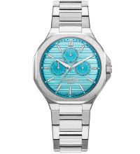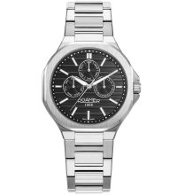 The Square case is 42 mm wide and 10 mm height and, depending on individual taste, will adorn almost any wrist. The bezel, which is Fixed, stands out discreetly from the case. The case back of the watch is a Stainless steel bottom, screwed, which sets the final point for a coherent design.