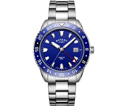 quartz movement (with battery) that, as is usual for Rotary watches, guarantees precise timekeeping and provides the following functions: Date, GMT, Minute, Second, Hour, 2 timezones.