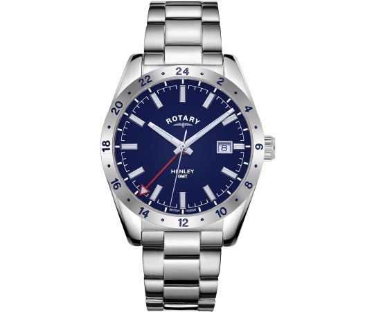 quartz movement (with battery) that, as is usual for Rotary watches, guarantees precise timekeeping and provides the following functions: Date, GMT, Minute, Second, Hour, 2 timezones.
