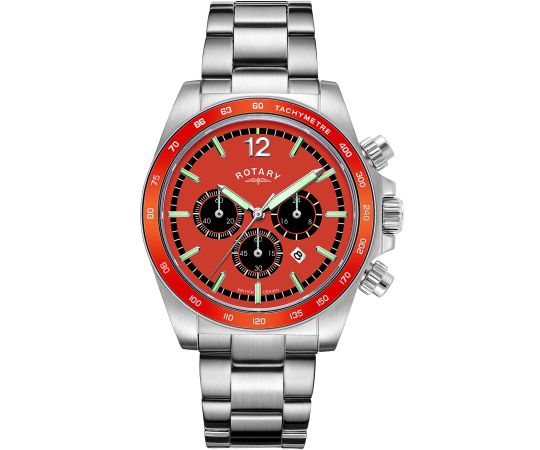 quartz movement (with battery) that, as is usual for Rotary watches, guarantees precise timekeeping and provides the following functions: 24-hours, Chronograph, Date, Minute, Second, Hour.