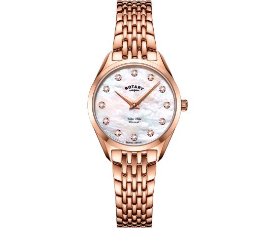 quartz movement (with battery) that, as is usual for Rotary watches, guarantees precise timekeeping and provides the following functions: Minute, Hour.