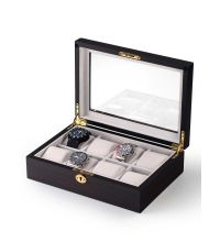 Exclusive, lockable watch box with glass lid by Rothenschild made of wood for storage of up to 8 watches. The individual compartments provide sufficient space for watches with a diameter of up to approx. 53 mm. Watches Rothenschild accessories offer excellent workmanship and excellent value for money.
