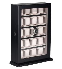 Exclusive, lockable watchcase with glass door by Rothenschild made of wood for storage of up to 20 watches. The surface is matt-sealed. The individual compartments provide sufficient space for watches with a diameter of up to approx. 53 mm. The showcase is delivered with a base, but can alternatively be fixed with a wall suspension. Rothenschild accessories offer excellent workmanship with an excellent price / performance ratio.