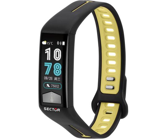 quartz movement (with battery) that, as is usual for Sector watches, guarantees precise timekeeping and provides the following functions: Alarm, Date, Heart rate monitor, Calorie counter, Minute, Multisport, Music control, Pedometer, Stop function, Hour, Weather, Day.
