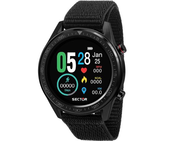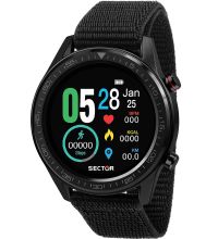 Accu movement that, as is usual for Sector watches, guarantees precise timekeeping and provides the following functions: Alarm, Bluetooth calls, Date, Heart rate monitor, Calorie counter, Microphone, Minute, Month, Multisport, Music control, Phone Finder, Sleep tracker, Pedometer, Stop function, Hour, Weather.