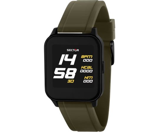 Accu movement that, as is usual for Sector watches, guarantees precise timekeeping and provides the following functions: Alarm, Bluetooth calls, Date, Heart rate monitor, Calorie counter, Microphone, Minute, Multisport, Music control, Phone Finder, Sleep tracker, Pedometer, Stop function, Hour, Weather.