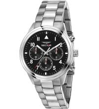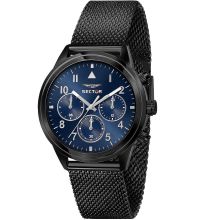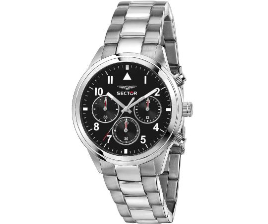 quartz movement (with battery) that, as is usual for Sector watches, guarantees precise timekeeping and provides the following functions: 24-hours, Minute, Second, Hour, 2 timezones.