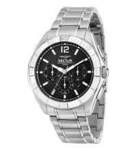 quartz movement (with battery) that, as is usual for Sector watches, guarantees precise timekeeping and provides the following functions: Hour, Minute, Second, Date, Chronograph, 24-hours.