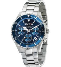 quartz movement (with battery) that, as is usual for Sector watches, guarantees precise timekeeping and provides the following functions: 24-hours, Chronograph, Date, Minute, Second, Hour.