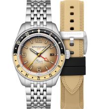 automatic movement that, as is usual for Spinnaker watches, guarantees precise timekeeping and provides the following functions: Hour, Minute, Second, Date, GMT, 2 timezones.