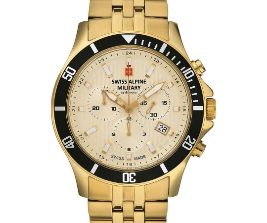 quartz movement (with battery) that, as is usual for Swiss Alpine Military watches, guarantees precise timekeeping and provides the following functions: Chronograph, Date, Minute, Second, Hour.