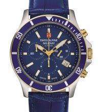 The Swiss Alpine Military Mens watch 7022.9532 is a sporty companion from the model series Chrono 42mm. A perfect choice if you are looking for a timepiece with a vivid look.