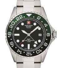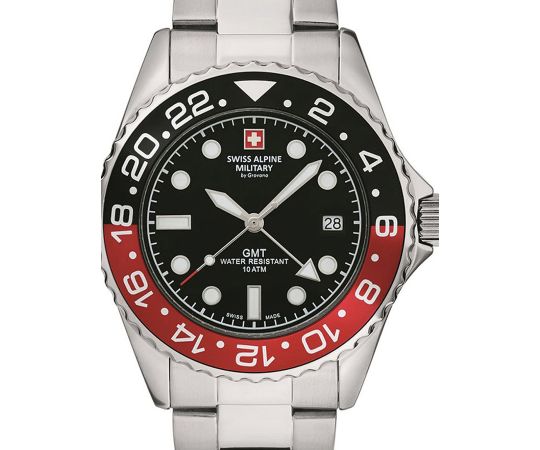 quartz movement (with battery) that, as is usual for Swiss Alpine Military watches, guarantees precise timekeeping and provides the following functions: Date, GMT, Minute, Second, Hour, 2 timezones.