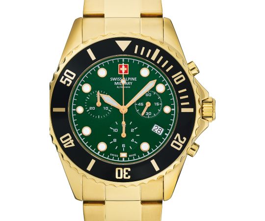 quartz movement (with battery) that, as is usual for Swiss Alpine Military watches, guarantees precise timekeeping and provides the following functions: Chronograph, Date, Minute, Second, Hour.