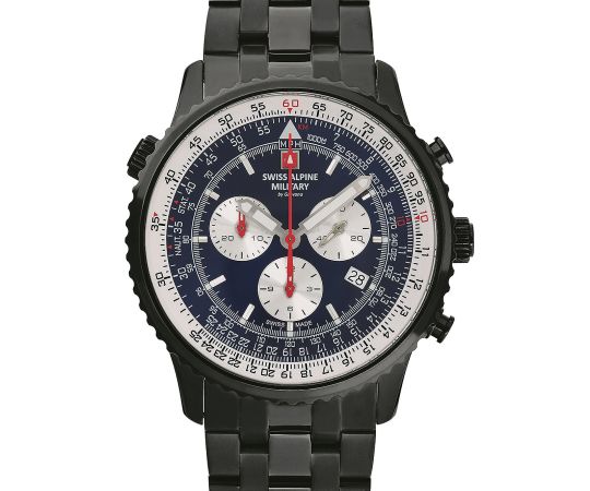 quartz movement (with battery) that, as is usual for Swiss Alpine Military watches, guarantees precise timekeeping and provides the following functions: Chronograph, Date, Minute, Second, Hour.