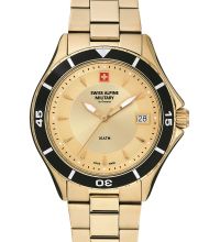 The high-quality Stainless steel bracelet - colour: Gold - with Folding clasp will give you additional pleasure with your new Swiss Alpine Military watch. The Stainless steel bracelet offers a high level of wearing comfort and can be worn up to a maximum wrist circumference of 190 mm.