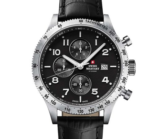 quartz movement (with battery) that, as is usual for Swiss Military watches, guarantees precise timekeeping and provides the following functions: Chronograph, Date, Minute, Second, Hour.