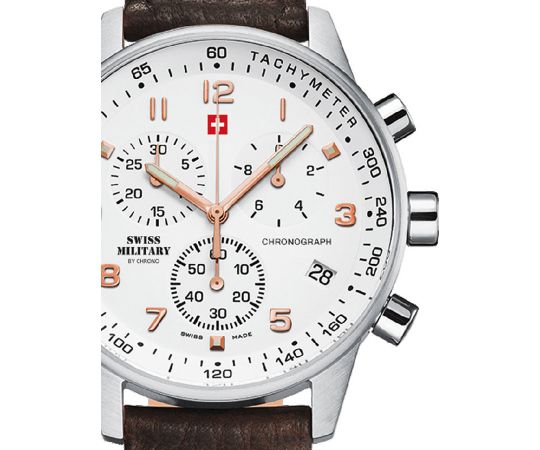 quartz movement (with battery) that, as is usual for Swiss Military watches, guarantees precise timekeeping and provides the following functions: Chronograph, Date, Minute, Second, Hour.
