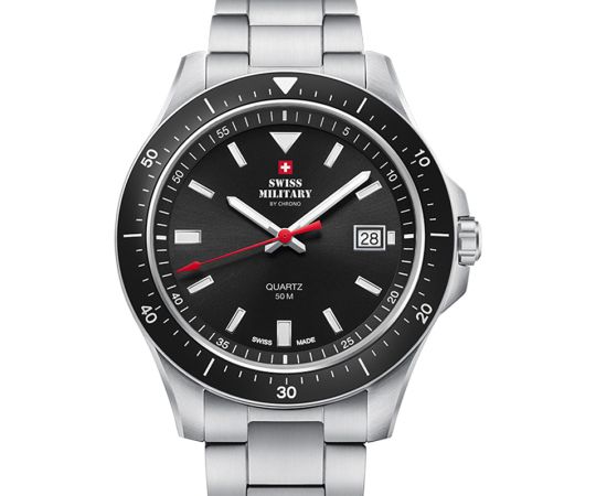 quartz movement (with battery) that, as is usual for Swiss Military watches, guarantees precise timekeeping and provides the following functions: Date, Minute, Second, Hour.