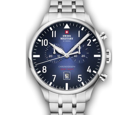 quartz movement (with battery) that, as is usual for Swiss Military watches, guarantees precise timekeeping and provides the following functions: Hour, Minute, Second, Date, Chronograph.