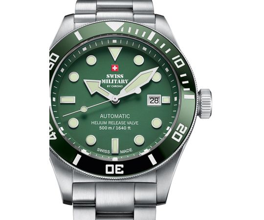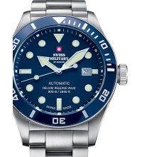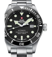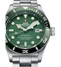 automatic movement that, as is usual for Swiss Military watches, guarantees precise timekeeping and provides the following functions: Date, Helium valve, Minute, Second, Hour.