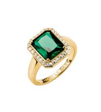 The ring, symbol of connectedness. A ring has no beginning and no end. Rings stand for eternity and are therefore also the sign of engagement and marriage. At the same time, they are also popular pieces of jewelry that underline the beauty of the female hand. This Thomas Sabo Ladiesring from the Ring with green octagon stone Elyndra Gold-plated line in the size 17,8 mm, RS56 and made of Sterling Silver 925 makes every hand an absolute eye-catcher.