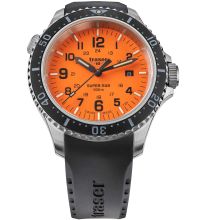 With dial variants in bright orange, maritime navy blue or stylish black and white P67 SuperSub also attracts everyone's attention on land. The case back is decorated with an engraving Frogfish - an allusion to the added value of lighting technology in the deep sea. Both the rubber and the stainless steel bracelet fit over thanks to the diving extensions every wetsuit. The new rubber strap was made even more robust for the diving watch and can be opened quickly and easily thanks to the larger buckle.