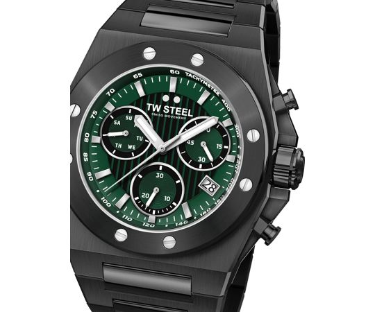 quartz movement (with battery) that, as is usual for TW-Steel watches, guarantees precise timekeeping and provides the following functions: Chronograph, Date, Minute, Second, Hour, Day.