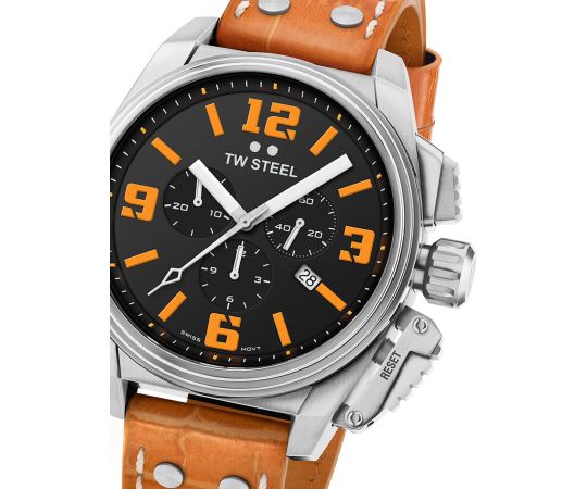 At the heart of this timepiece is an quartz movement (with battery) that, as is usual for TW-Steel watches, guarantees precise timekeeping and provides the following functions: Chronograph, Date, Minute, Second, Hour.
