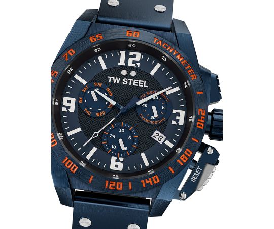 quartz movement (with battery) that, as is usual for TW-Steel watches, guarantees precise timekeeping and provides the following functions: Chronograph, Date, Minute, Second, Hour, Day.