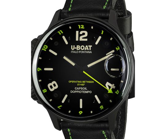 quartz movement (with battery) that, as is usual for U-Boat watches, guarantees precise timekeeping and provides the following functions: Hour, Minute, GMT, 2 timezones.