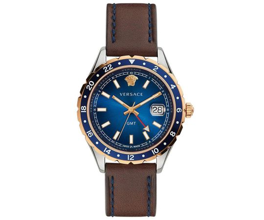 quartz movement (with battery) that, as is usual for Versace watches, guarantees precise timekeeping and provides the following functions: Date, GMT, Minute, Second, Hour, 2 timezones.