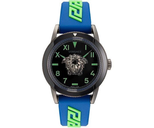 The high-quality Silicon bracelet - colour: Blue, Green - with Folding clasp will give you additional pleasure with your new Versace watch. The Silicon bracelet offers a high level of wearing comfort and can be worn up to a maximum wrist circumference of 220 mm.