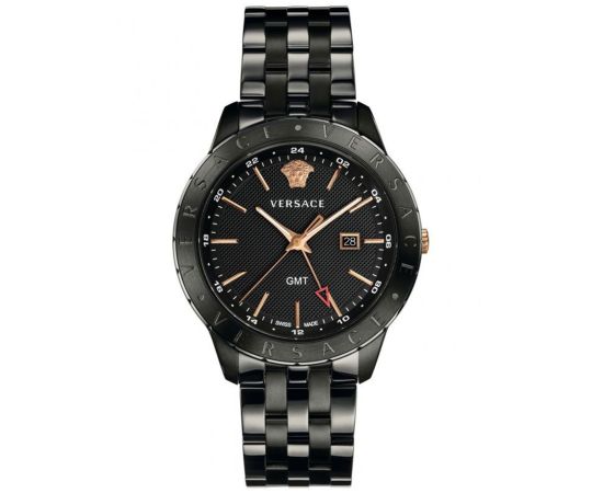 quartz movement (with battery) that, as is usual for Versace watches, guarantees precise timekeeping and provides the following functions: Date, Minute, Second, Hour, 2 timezones.